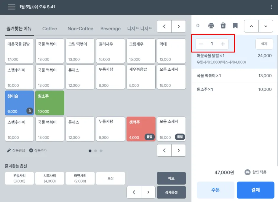 포스 좌측 상단 ≡ → 상품관리 및 재고관리 목록에서