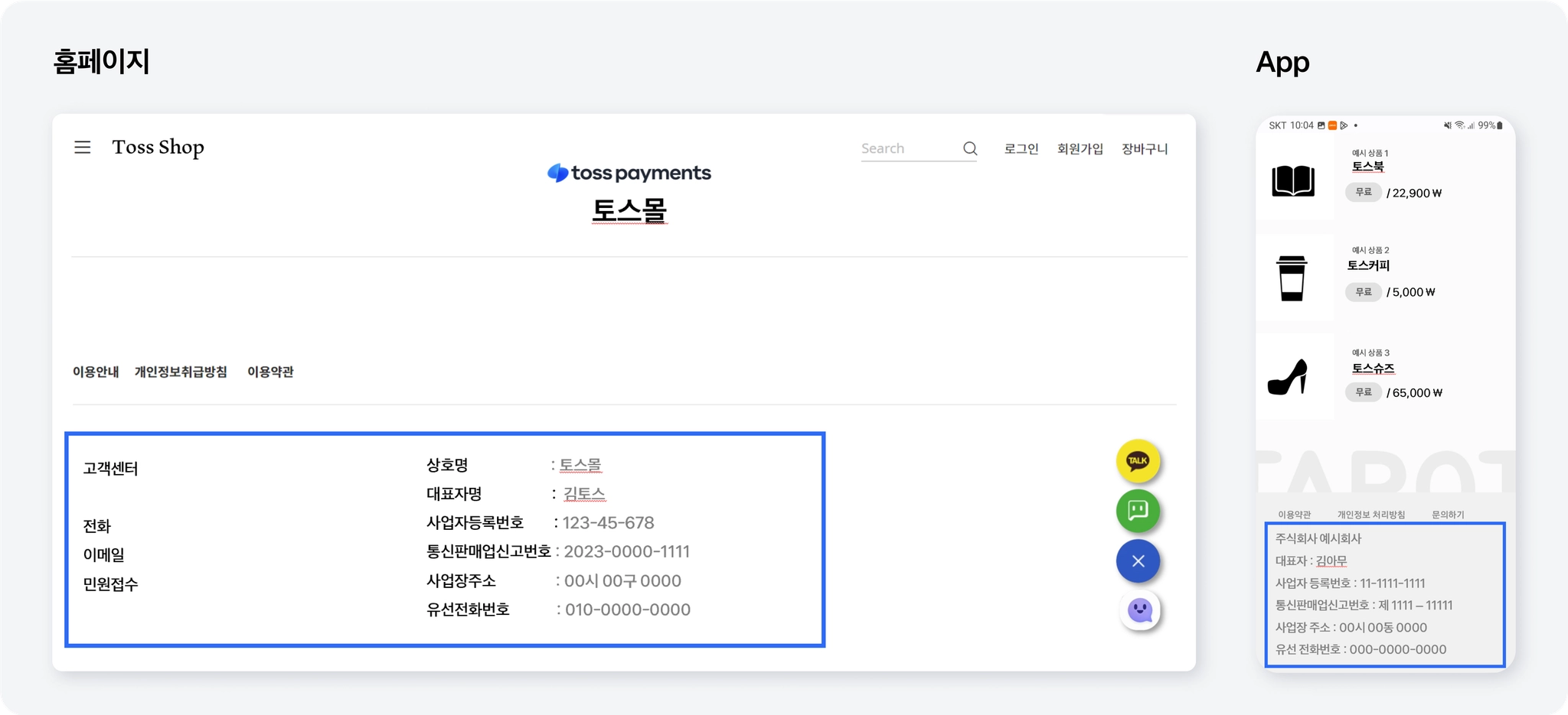 하단 사업자정보 및 전화번호(010 <> 안심번호로 변경하시는 등)를 변경하지 말아주세요.
