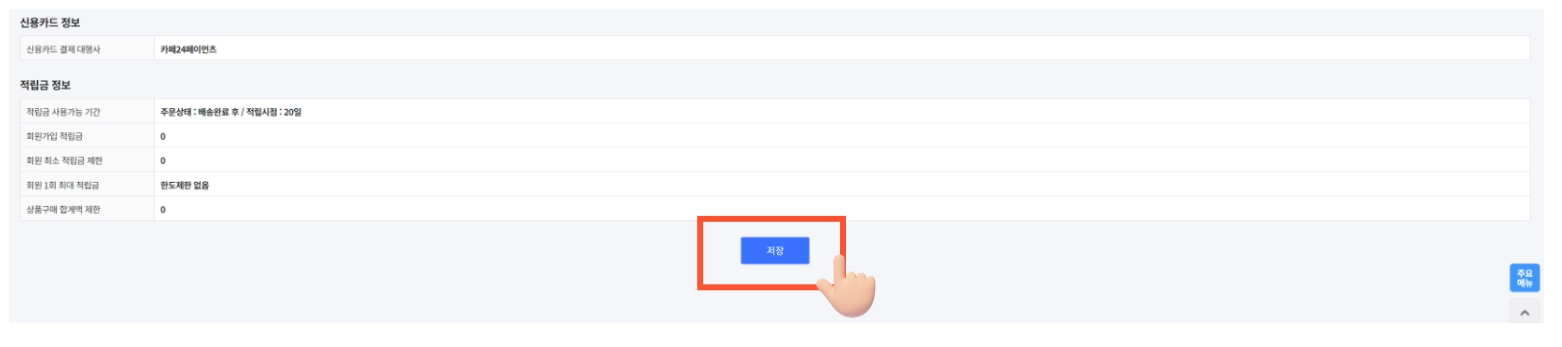 설정을 마친 후에는 반드시 하단의 '저장' 버튼을 클릭해 저장을 완료해주세요.