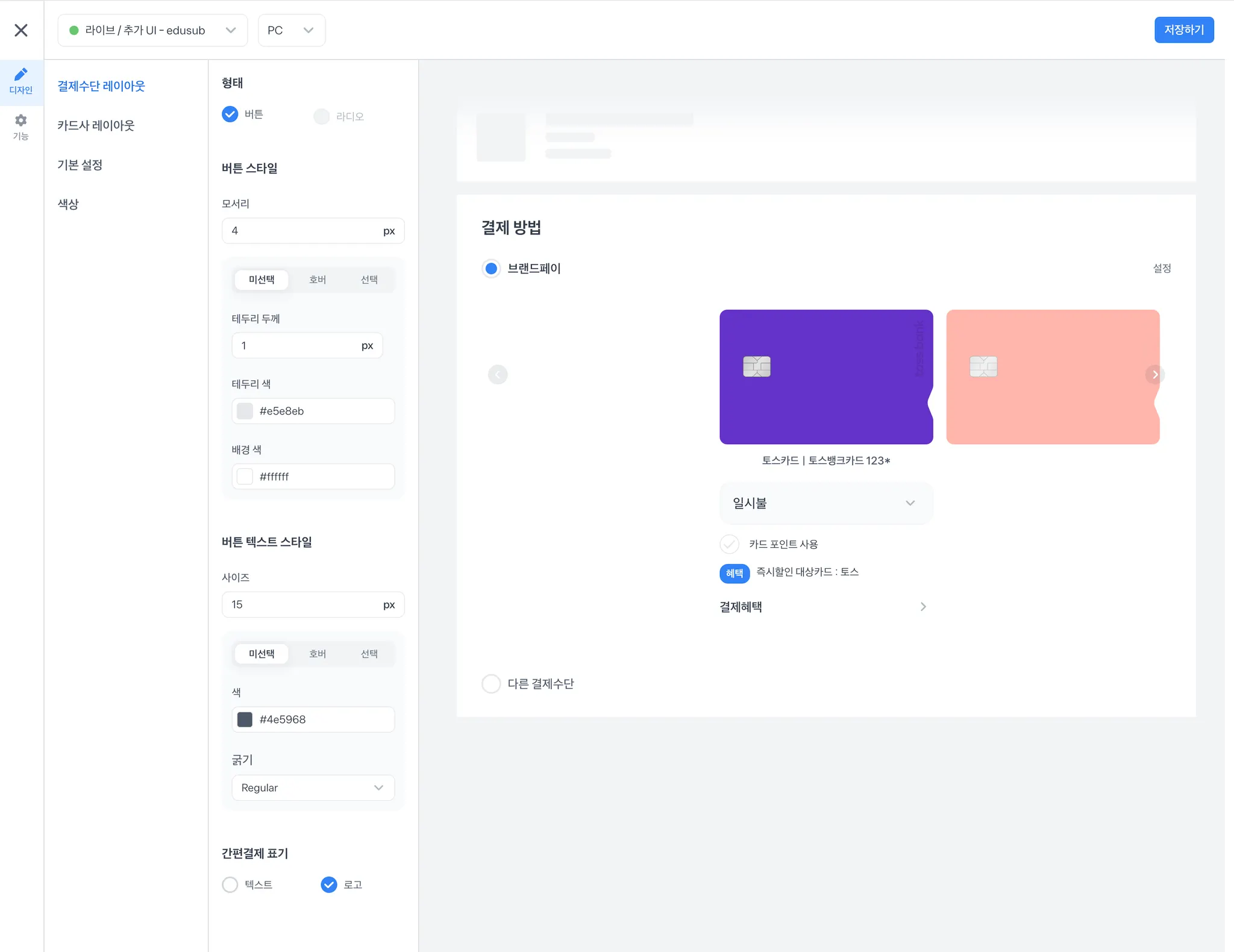 결제위젯에서는 브랜드페이 기능도 함께 제공하고 있는데요. 브랜드페이와 일반결제를 함께 도입하는 가맹점에 추천하는 방식입니다. (브랜드페이 단독으로도 사용가능)