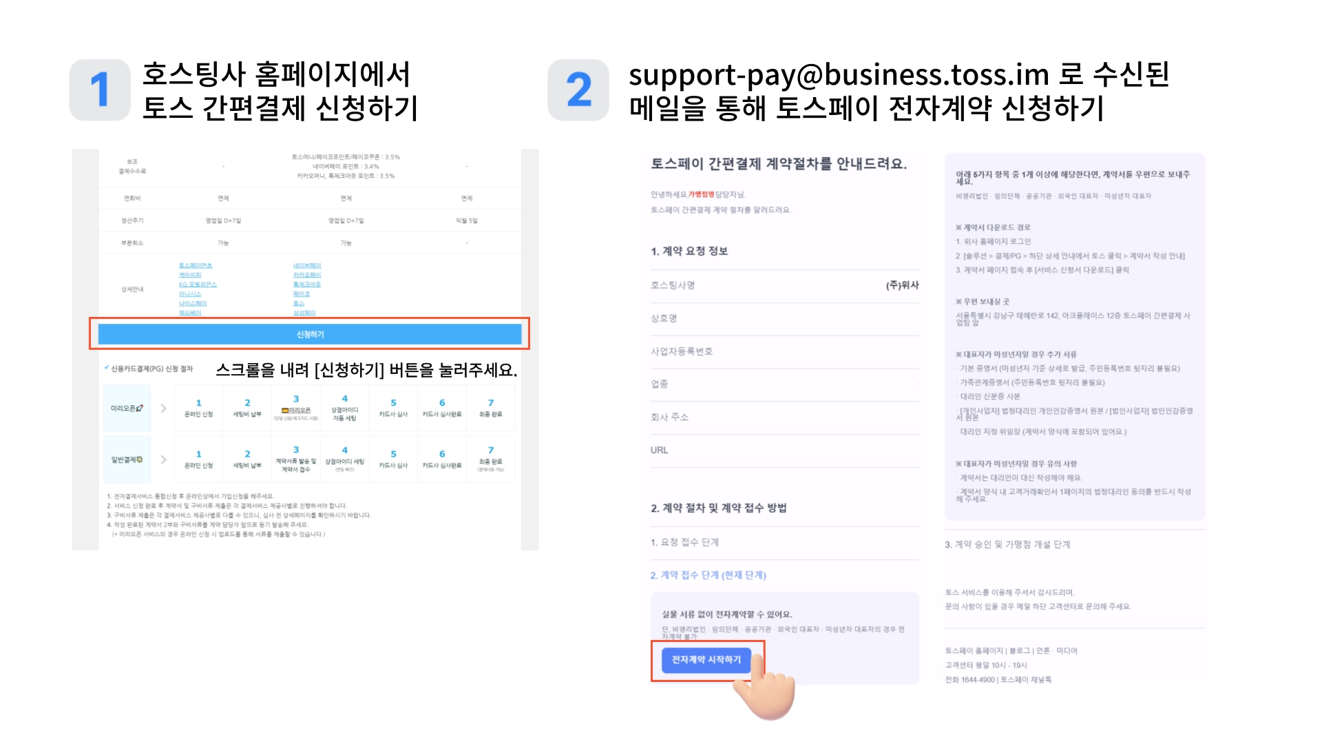 호스팅사를 통한 토스페이 간편결제 신청 방법은 2가지 과정이 모두 필요해요.