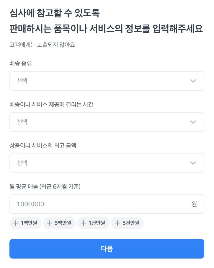 ํŒ๋งคํ•˜์‹œ๋Š” ํ’ˆ๋ชฉ์ด๋‚˜ ์„œ๋น„์Šค์˜ ์ •๋ณด๋ฅผ ์˜ฌ๋ฐ”๋ฅด๊ฒŒ ์ž…๋ ฅํ•ด ์ฃผ์„ธ์š”.