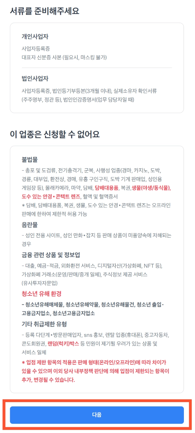 ์นดํŽ˜ 24์—์„œ ์‹ ์ฒญํ•œ ์‚ฌ์—…์ž๋ฒˆํ˜ธ์™€ ๋‹ค๋ฅผ ๊ฒฝ์šฐ, ์‹ ์ฒญ์ด ๋ถˆ๊ฐ€ํ•ด์š”.