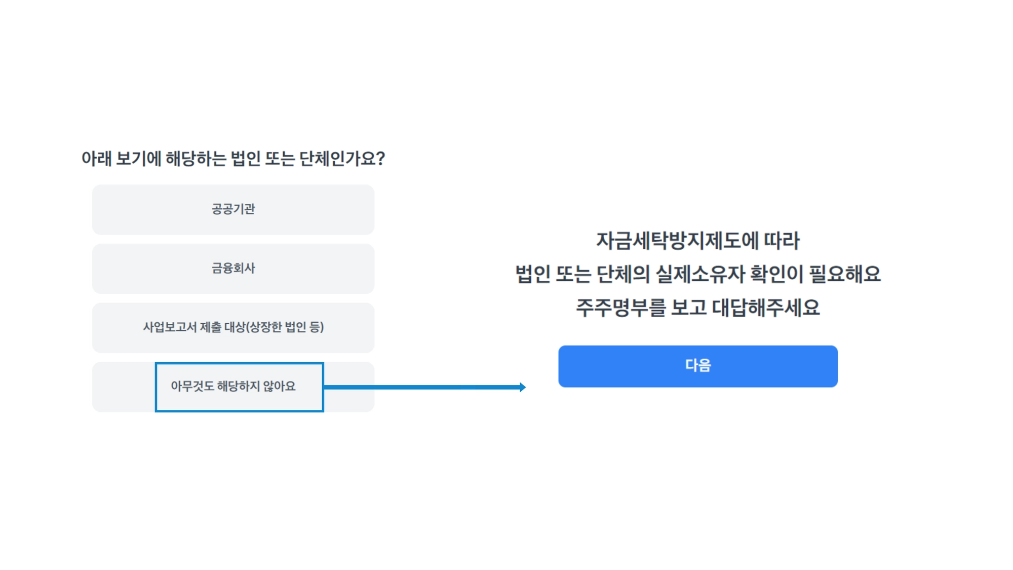 โ‘ง ์ž๊ธˆ์„ธํƒ๋ฐฉ์ง€๋ฒ•์— ๋”ฐ๋ฅธ ์‹ค์ œ์†Œ์œ ์ž ํ™•์ธ ์งˆ๋ฌธ์„ ํ™•์ธํ•˜๊ณ  ๋‹ตํ•ด์ฃผ์„ธ์š”.