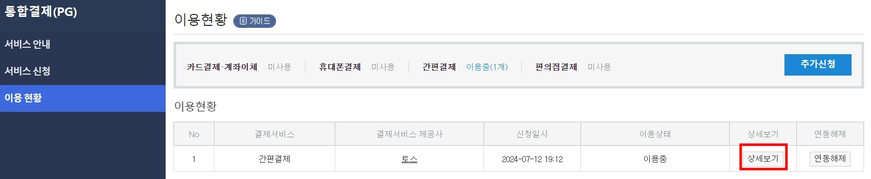 ๊ฒฝ๋กœ : ์นดํŽ˜24 ๋กœ๊ทธ์ธ โ†’ ๋ถ€๊ฐ€์„œ๋น„์Šค โ†’ ๊ธฐ๋ณธ ์šด์˜ ์„œ๋น„์Šค โ†’ ํ†ตํ•ฉ๊ฒฐ์ œ(PG)