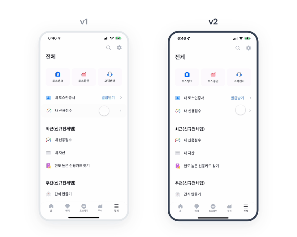 기존 신용홈의 UI를 활용한 모션(v1)을 디자인했고, 몇달 후 신용홈 디자인이 개편됐을 때 그에 맞게 모션(v2)도 개편했어요.