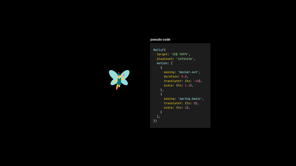이렇게 인터랙션을 시스템화 하려는 시도는 디자인으로만 그치지 않아요. Easing 처럼 모션의 작은 단위부터 복잡한 시퀀스까지 같은 스펙으로 구현하고 소통할 수 있는 iOS/Android/Web 공통 인터랙션 개발 라이브러리 ‘Rally’를 저희 팀에서 직접 만들었어요.