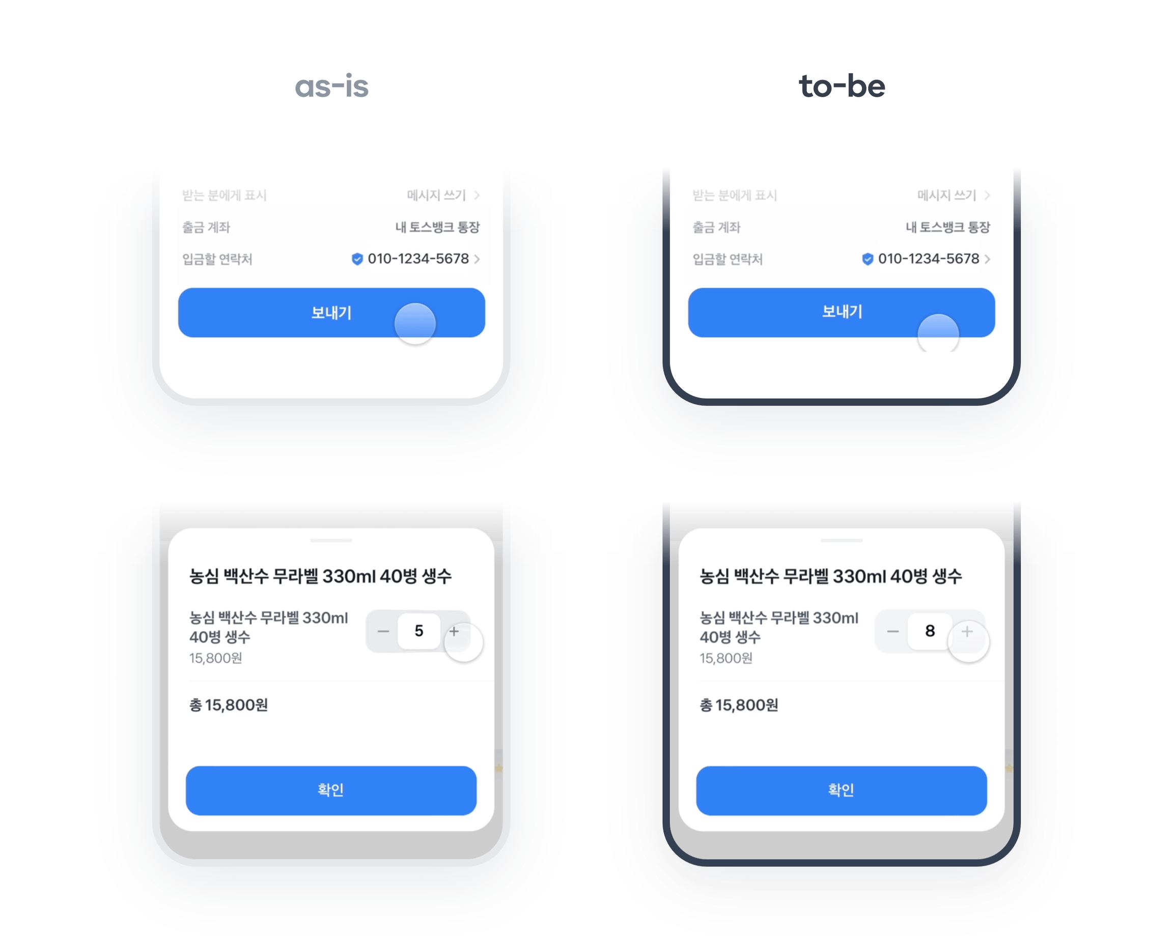버튼 컴포넌트 안에서 로딩중인 상태를 어떻게 보여줄지, 수량 선택하는 컴포넌트에서 더 명확하게 터치 피드백을 줄 수 있는 모션이 무엇인지 등 TDS 컴포넌트의 인터랙션 개선 작업도 해요.