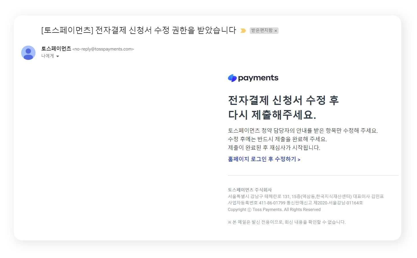 심사기간 동안 ‘홈페이지 수정 불가 항목’을 수정하시면 각 카드사에 의해 반려처리 돼요.