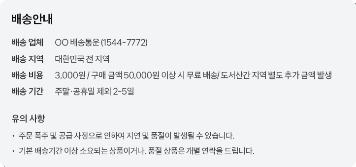 유형재화: 배송기간/ 교환 및 반품안내