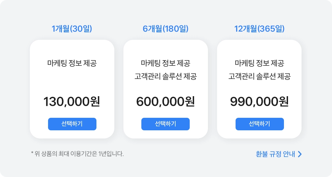 무형재화: 서비스 제공기간/ 환불정책