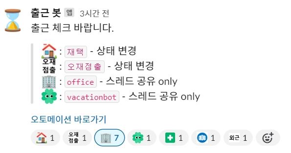 매일 아침 사무실 출근 시, (오피스) 이모지를 꼭 찍어주세요.