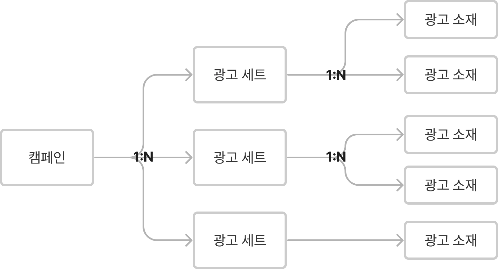 배너 광고는 캠페인을 만들고, 광고 세트와 광고 소재를 순서대로 만들어 생성할 수 있습니다. 나의 캠페인에 여러 개의 광고 세트를 설정할 수 있고, 하나의 광고 세트에도 여러 개의 광고 소재를 설정할 수 있습니다.