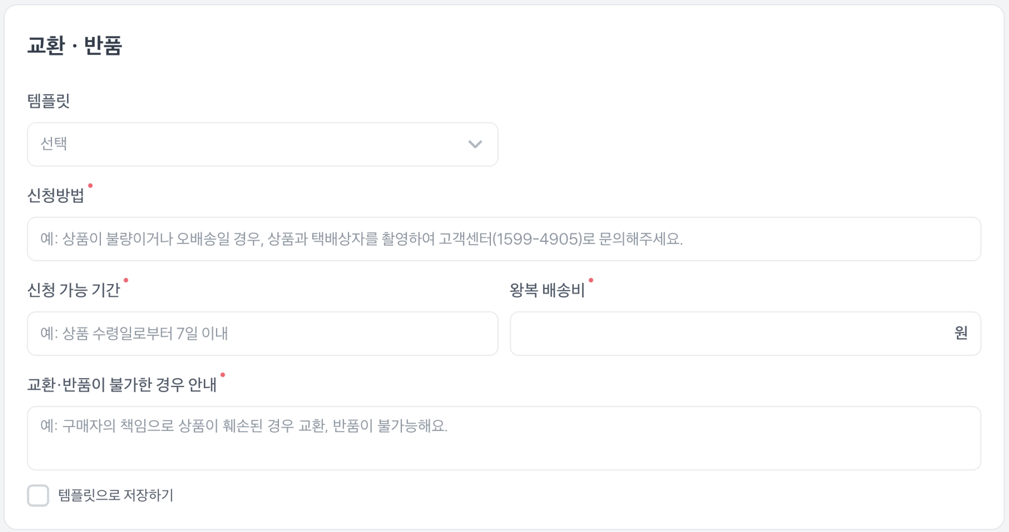 위 상품옵션, 설명 이미지, 배송 정보, 교환/반품 정보 외 다른 항목의 수정이 필요한 경우, 노출중인 상품의 노출을 중단하고 상품 복사를 통해 진행해주세요