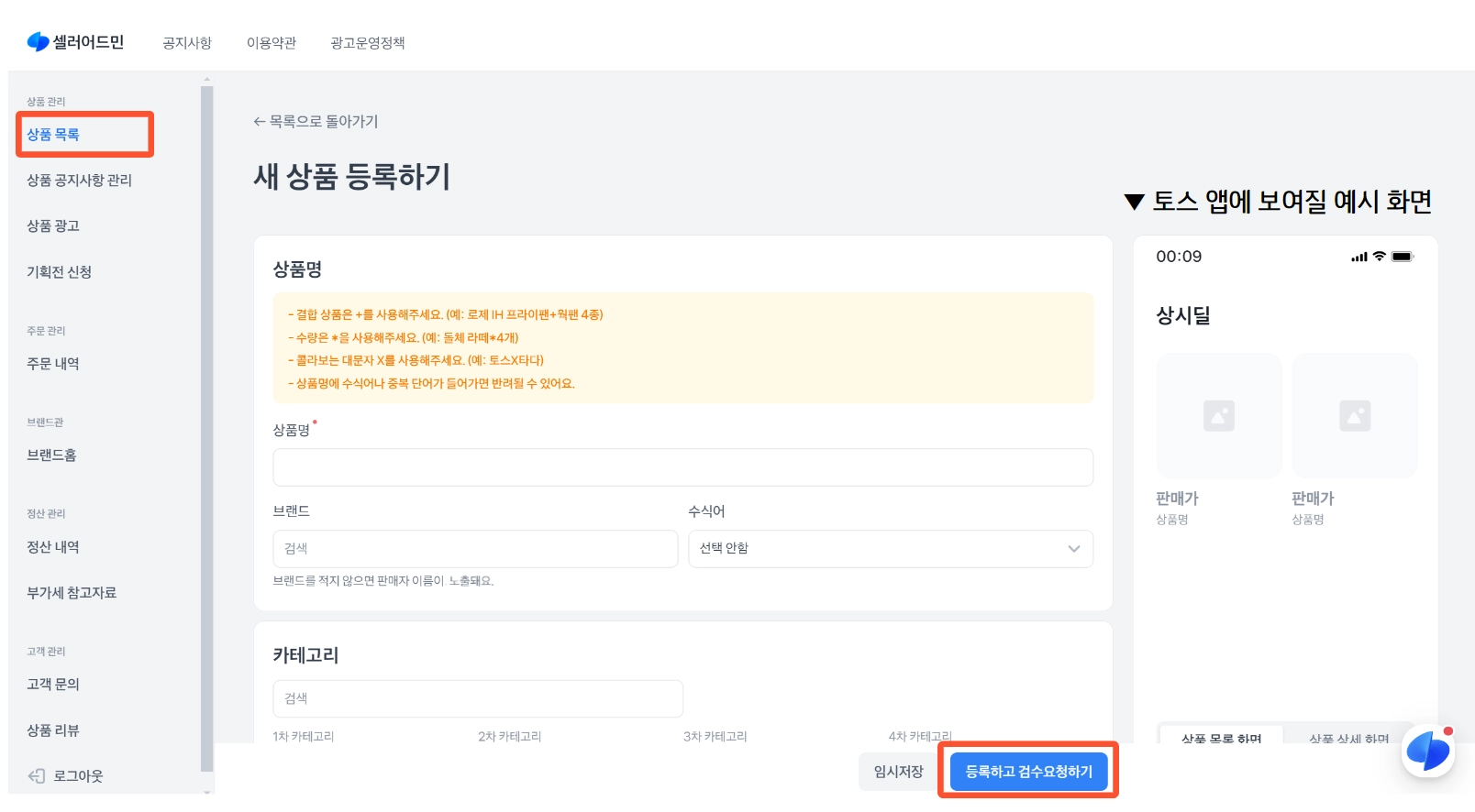 상품 등록/ 수정 / 변경은 토스에서 진행이 어려우며, 가맹점에서 직접 진행해 주셔야 합니다