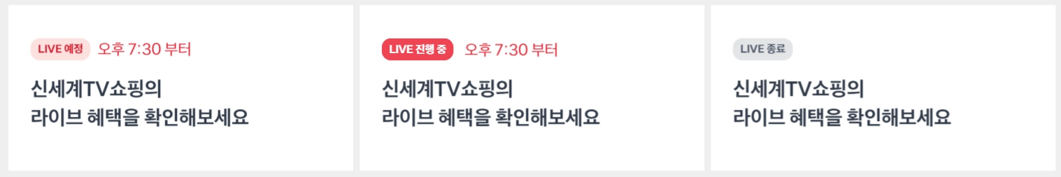 라이브 시간에 따라 상단에 상태를 보여주는 뱃지가 메인타이틀 상단에 나타납니다.