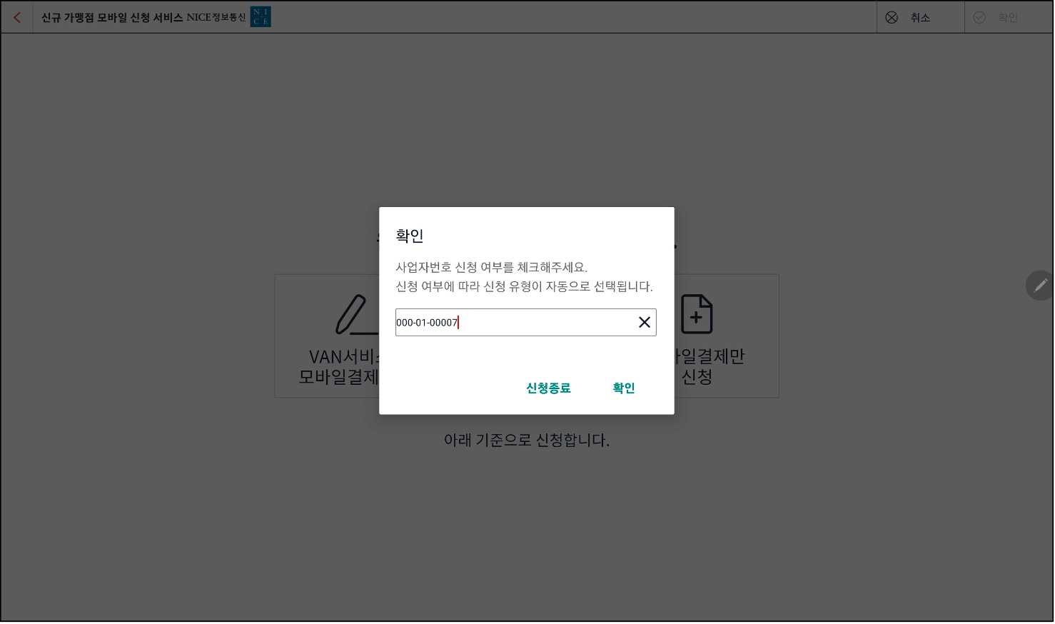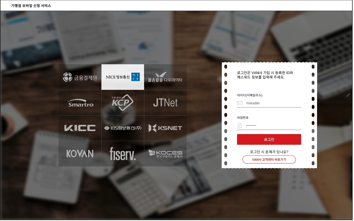 여러가지 서비스를 동시에 신청하는 경우(밴 서비스 + 모바일 결제 등)은 다른 항목을 선택하시어 진행해주세요.