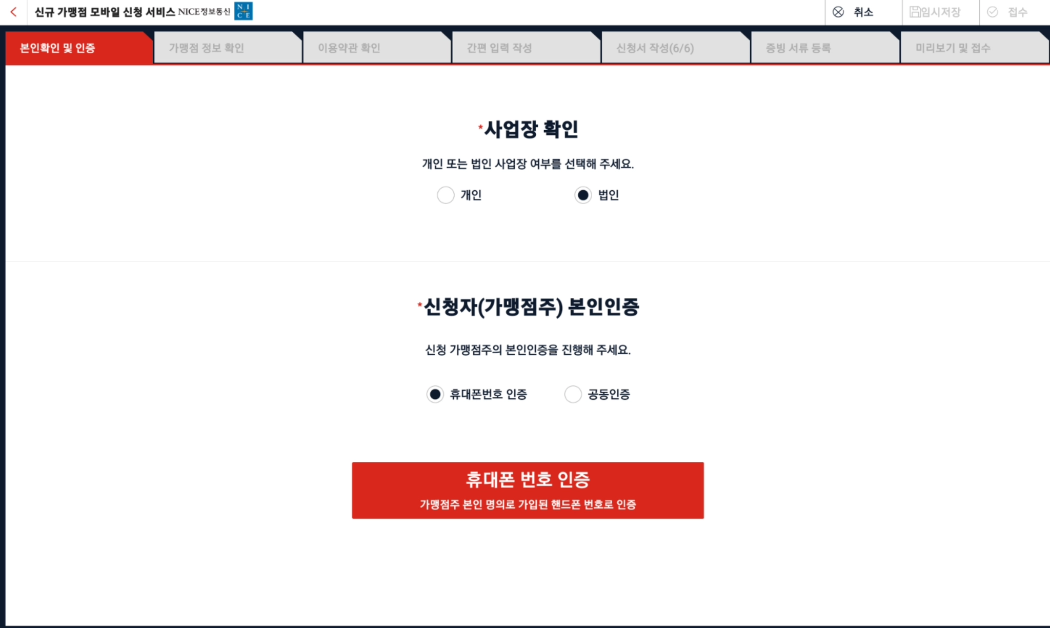 가맹점주가 외국인인 경우 외국인 등록증 인증을 통해 진행해 주세요.