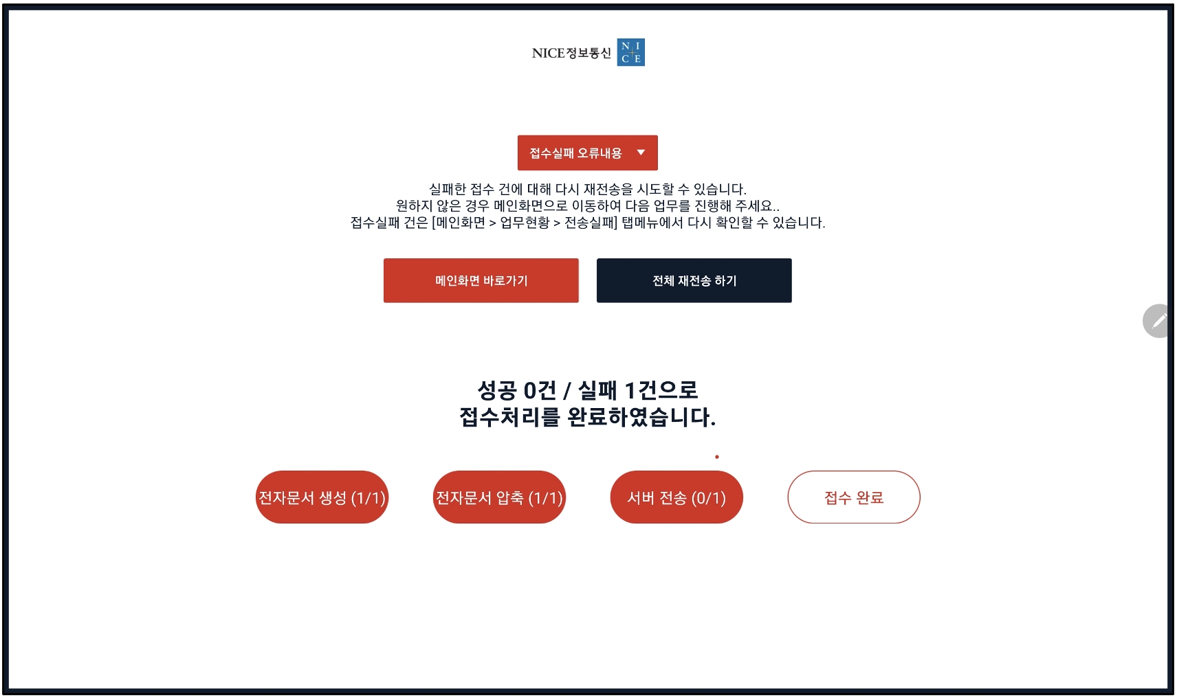 메인 화면으로 이동하여 신청서 재접수를 진행해 주세요.