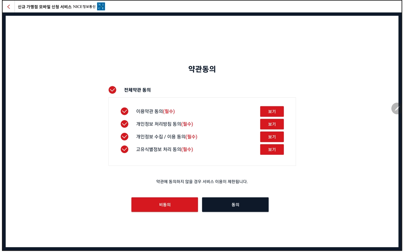 각 동의 사항에 대해서는 각 항목별로 우측의 보기 버튼을 눌러서 세부 내용을 확인할 수 있어요.