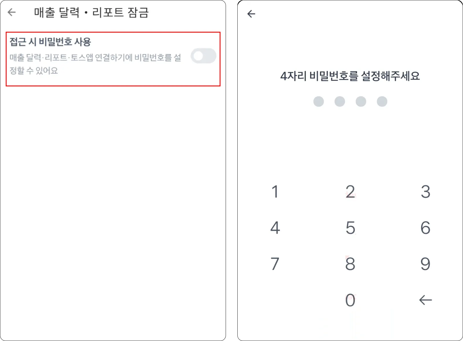 한 번 더 4자리 비밀번호를 누르면, 비밀번호가 설정 돼요.