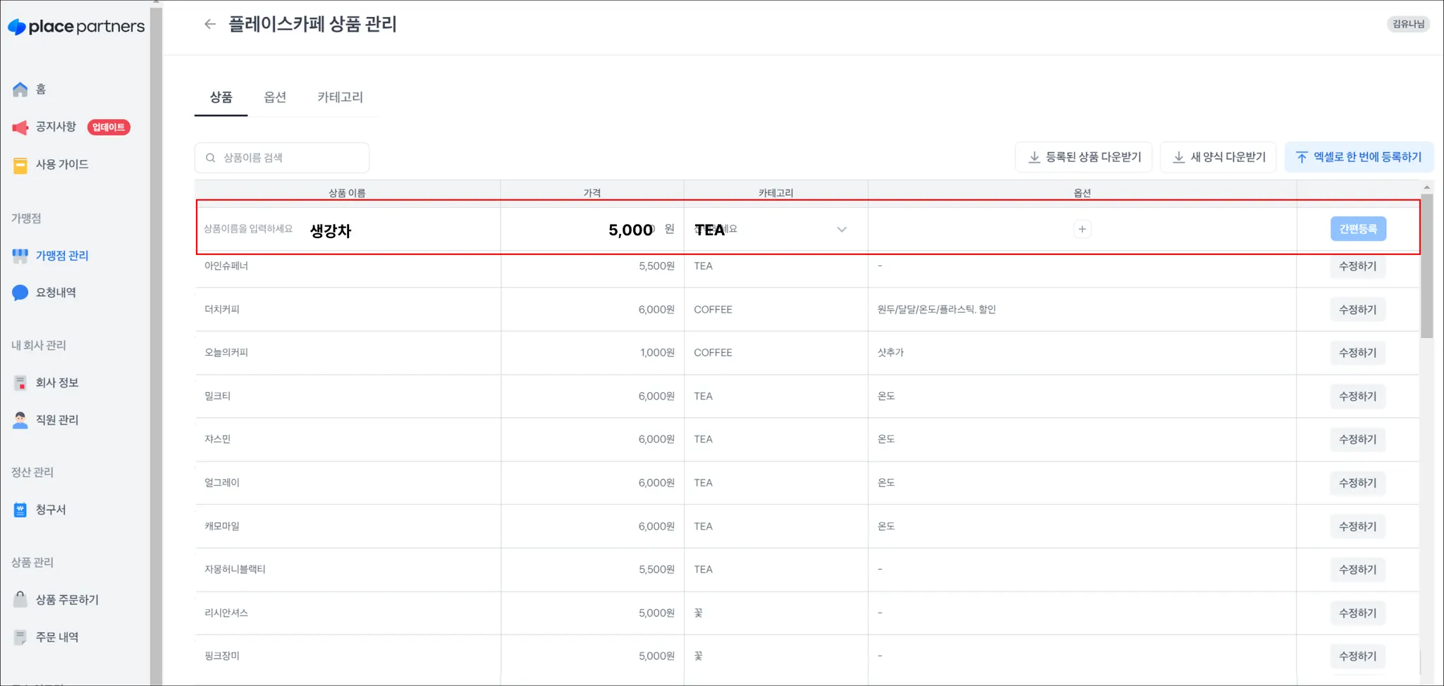 플레이스 파트너스 ASP로 상품 등록부터 후불 매장 테이블 수정, 프린터 추가까지 손쉽게 가능해요!
