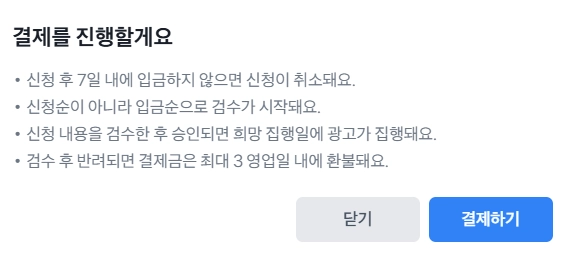 검수 후 반려되거나, 집행이 취소되면 결제금은 최대 3 영업일 내에 환불돼요.