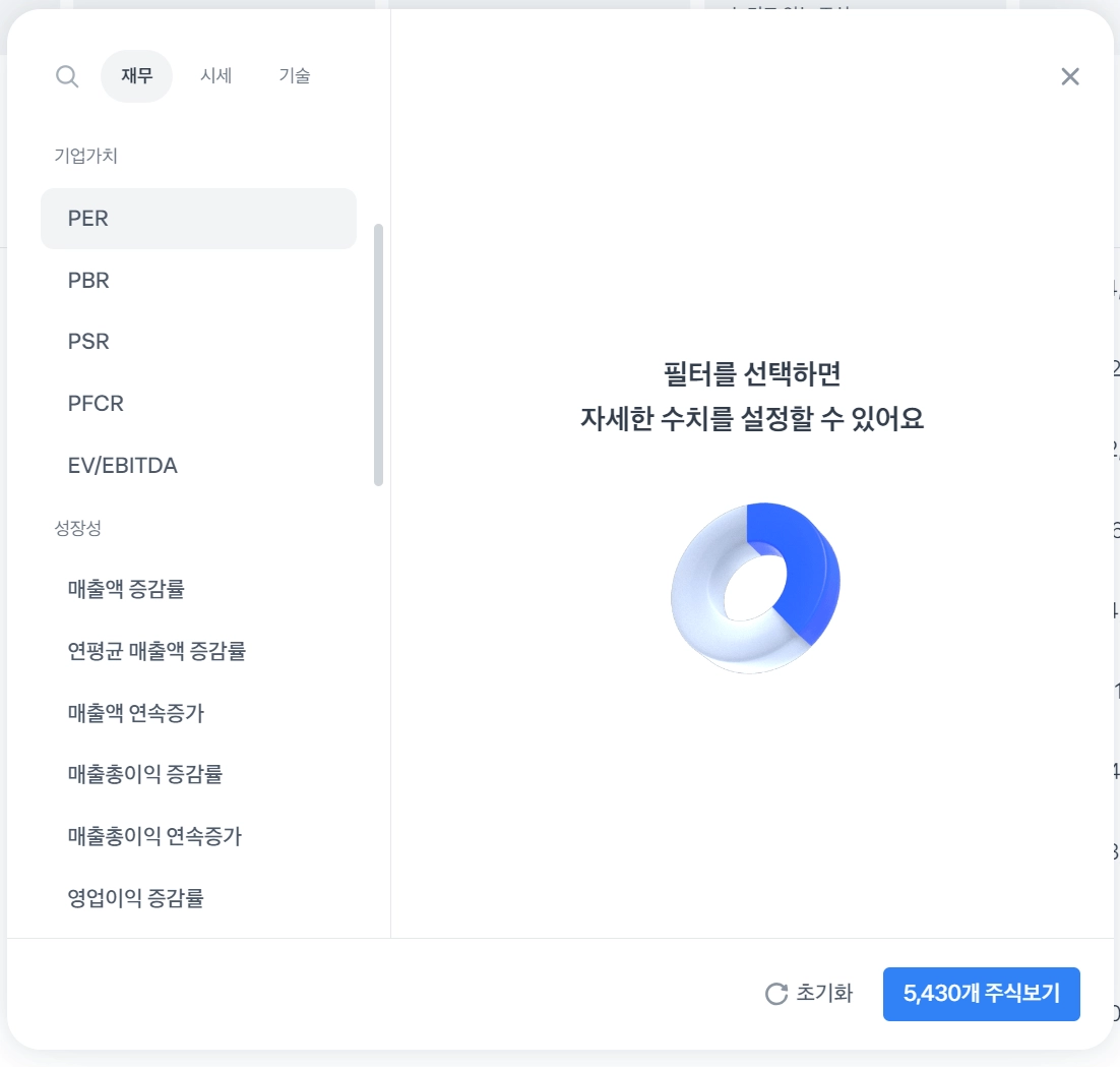 또한 해당 필터를 클릭했을 시, 초보자도 쉽게 이해할 수 있는 친절한 설명이 포함 ⇒ 누구나 쉽게 필터 사용하고 자기만의 종목 발굴할 수 있도록 도움