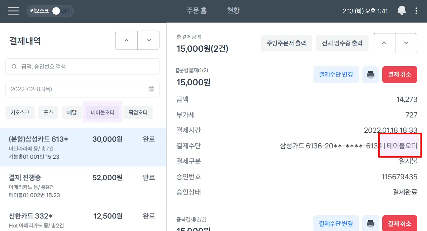 3. 포스에서 주문내역 확인 및 주문서 재출력 방법