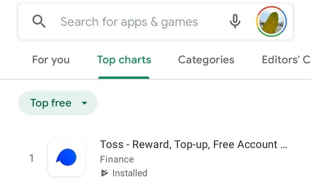 Cái ứng dụng Toss bất ngờ xuất hiện từ Hàn Quốc, đang nằm ở vị trí số 1.