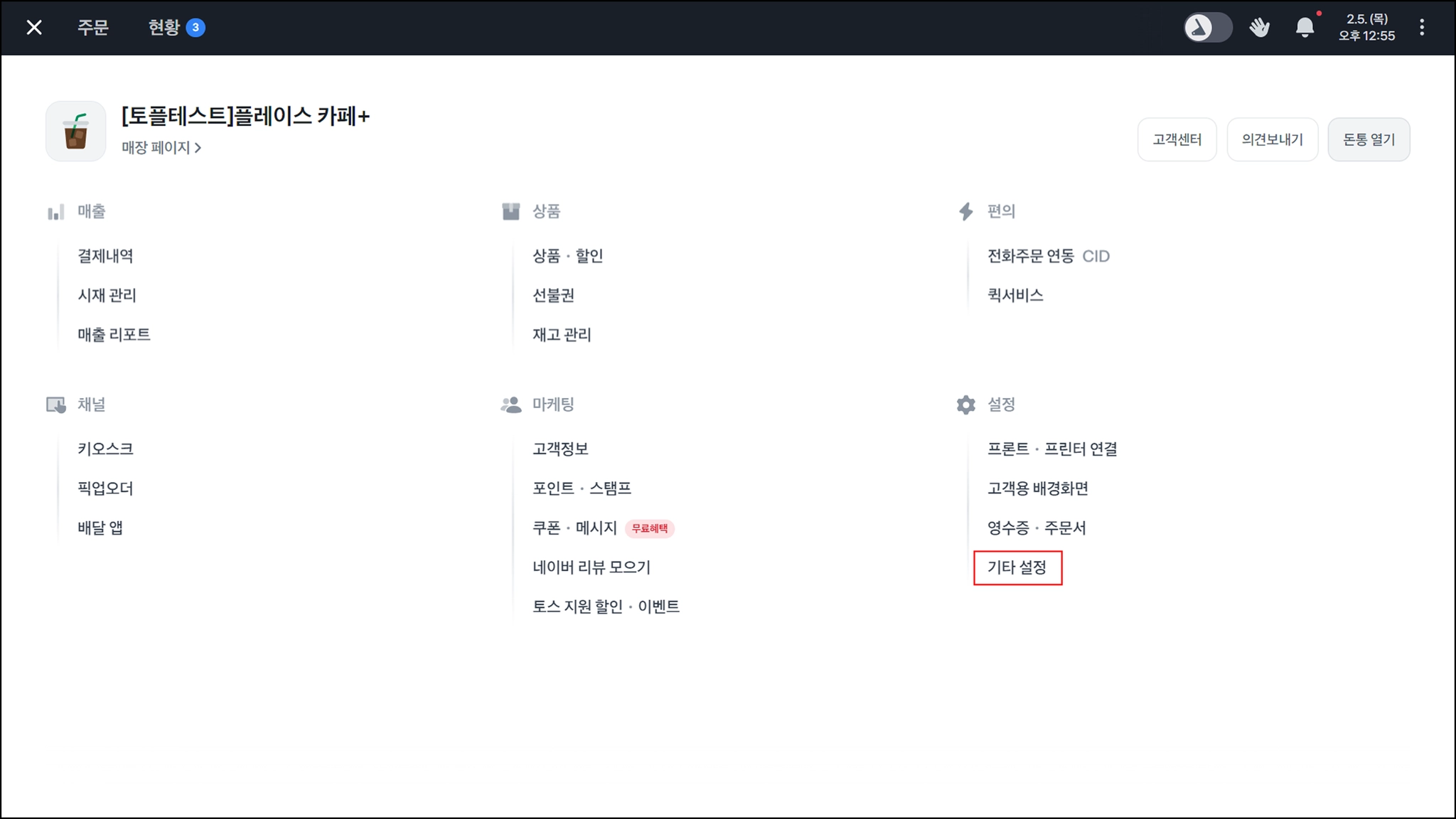 토스포스 왼쪽 상단 ≡ →