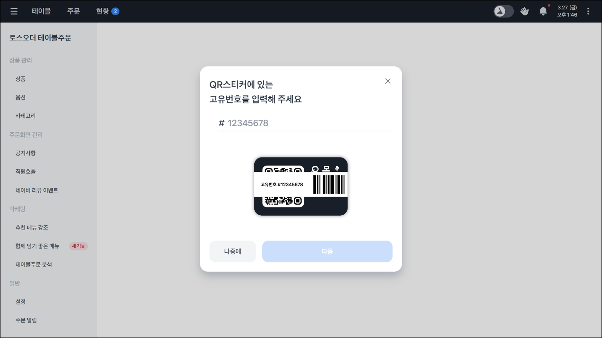 해당 설정은 테이블 주문 뿐만 아니라 토스 포스 상품에도 영향이 갈 수 있으니 꼭 주의해 주세요!