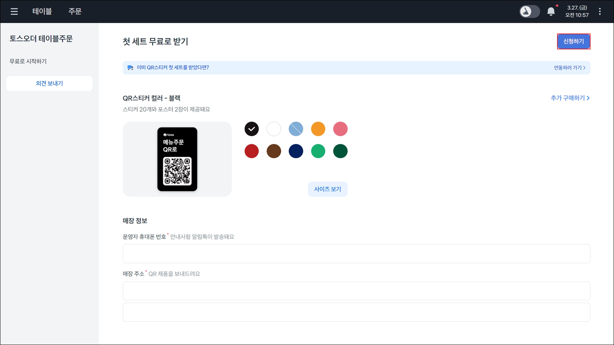 동의하고 테이블QR스티커 무료 신청하기를 눌러주세요.