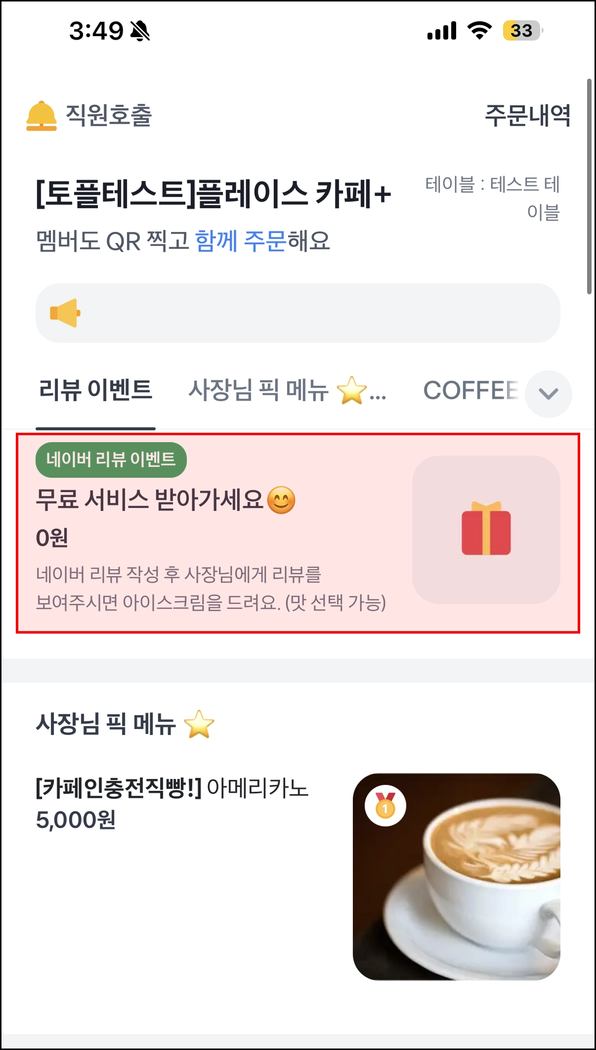 테이블오더 선불결제는 베타서비스로 아직 포인트, 스탬프, 쿠폰 적립과 사용을 할 수 없어요.