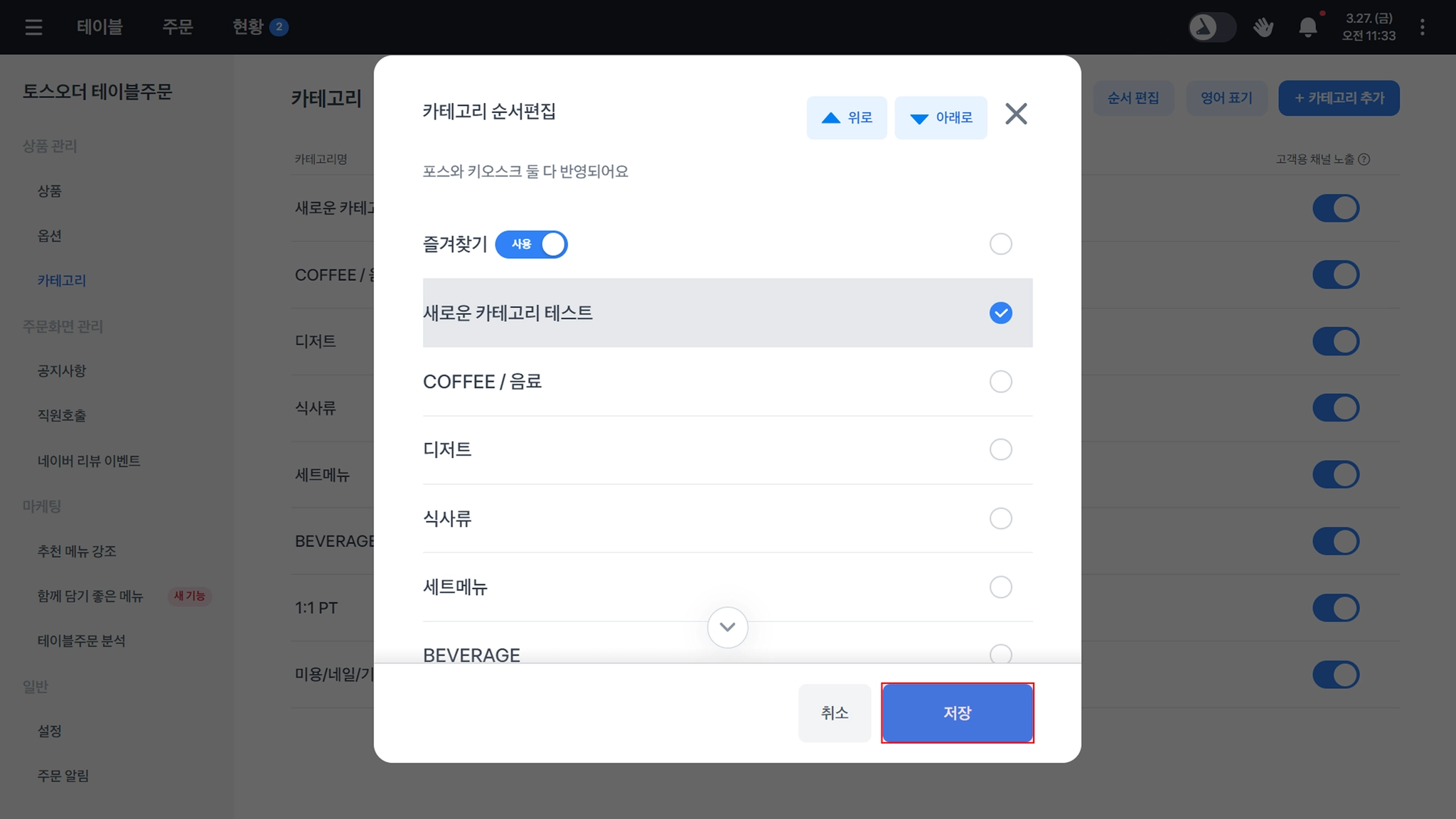 토스포스 카테고리 노출 순서 변경도 가능해요.