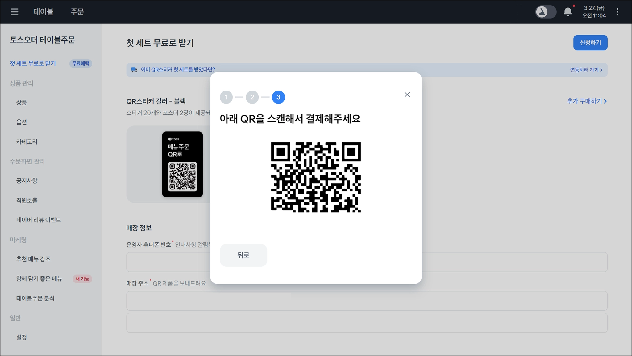 테이블 주문(QR) 최초 신청 시 보증금 결제가 진행되어요.