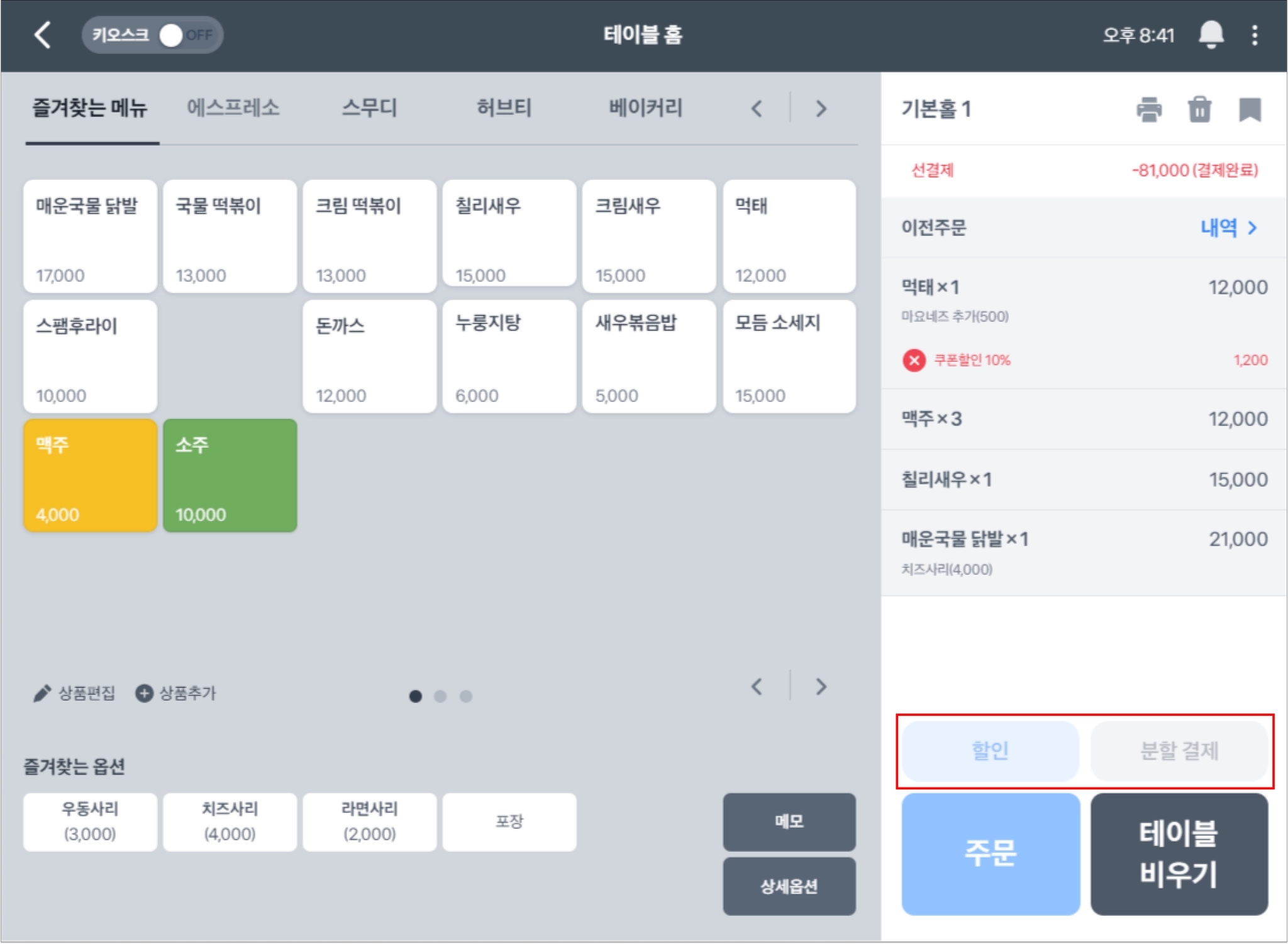 1. 테이블주문하면서 선불결제도 가능하도록 오픈되었어요!