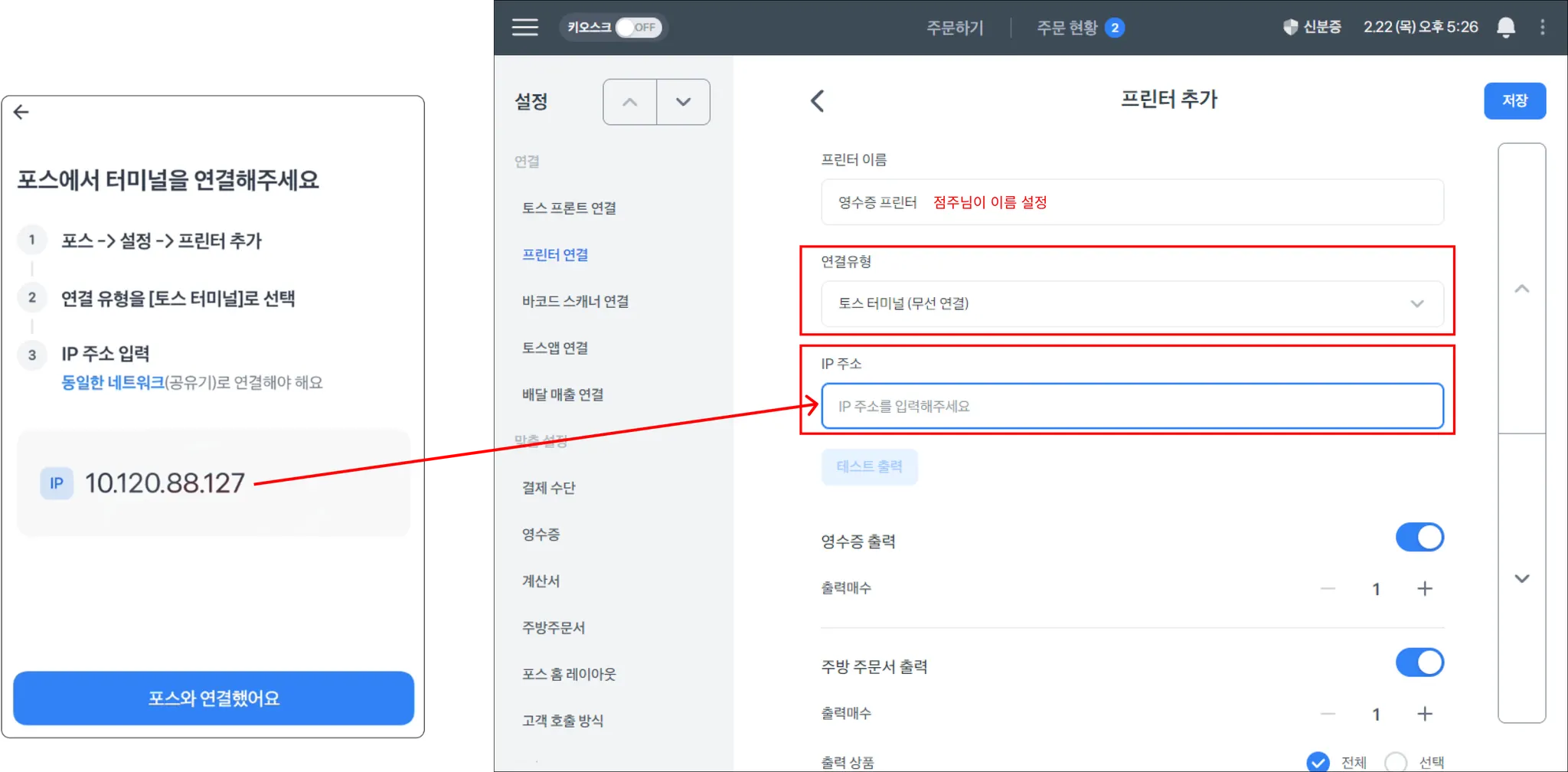터미널 프린터 연결 방법