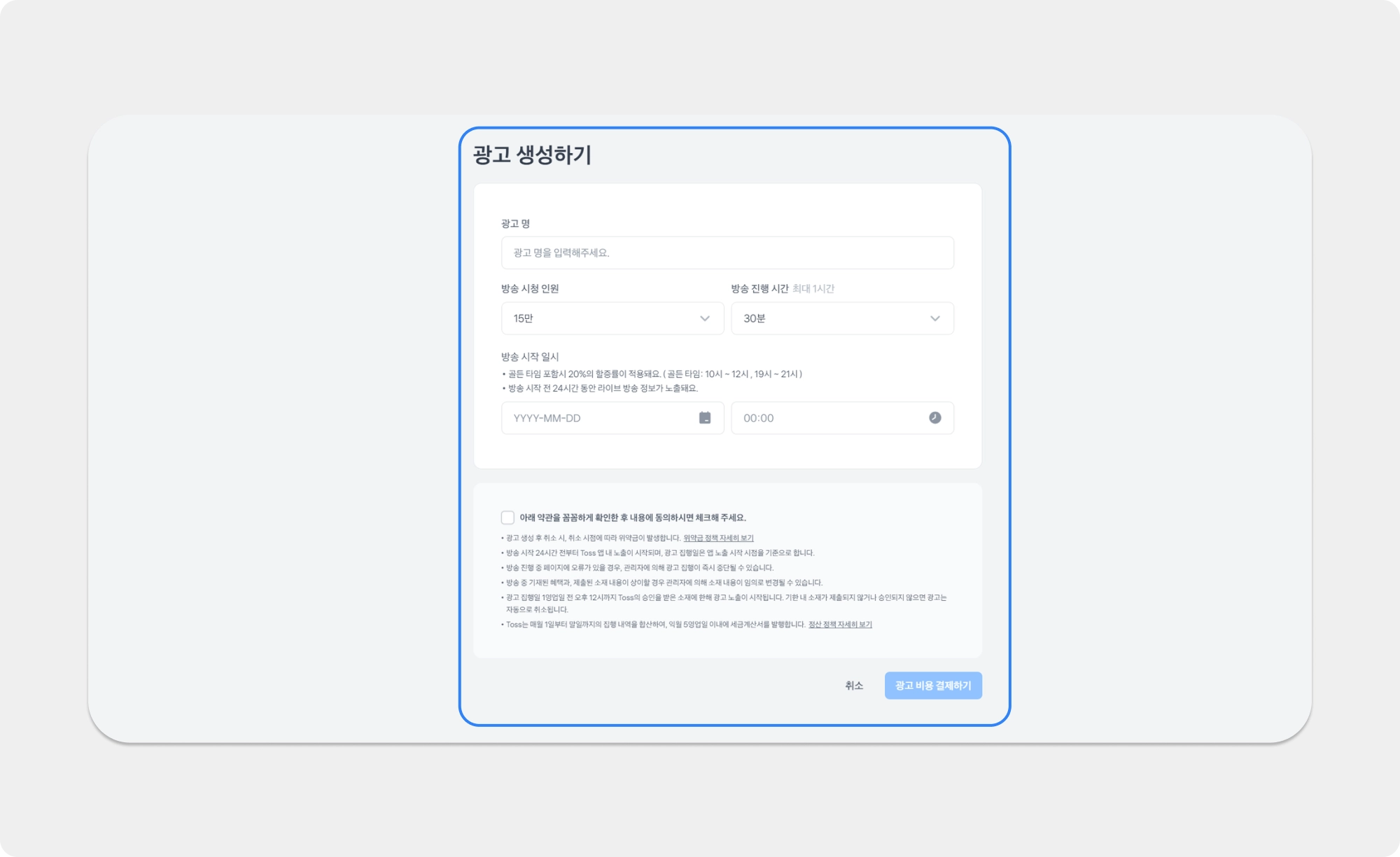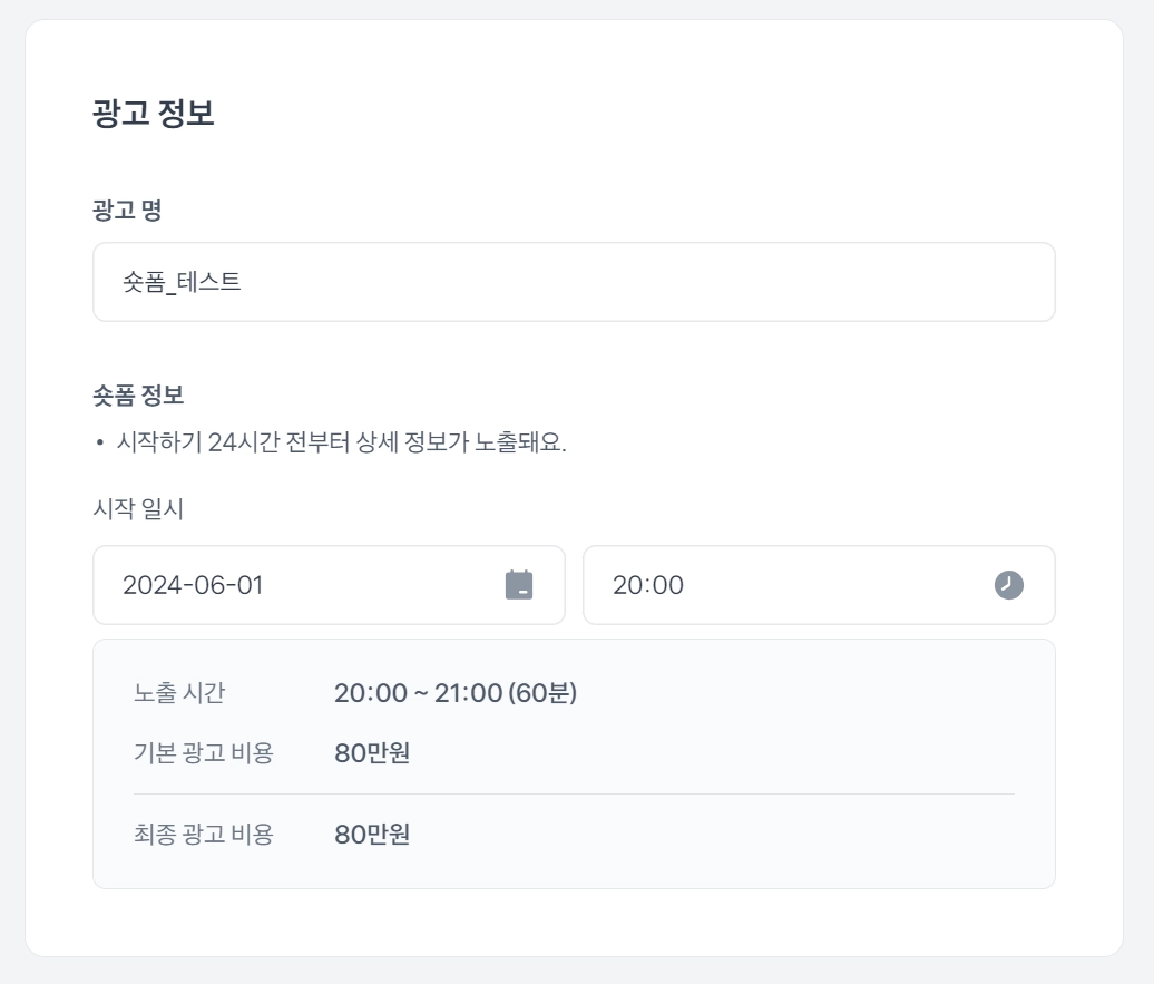 광고 명과 노출 시간을 설정해주세요