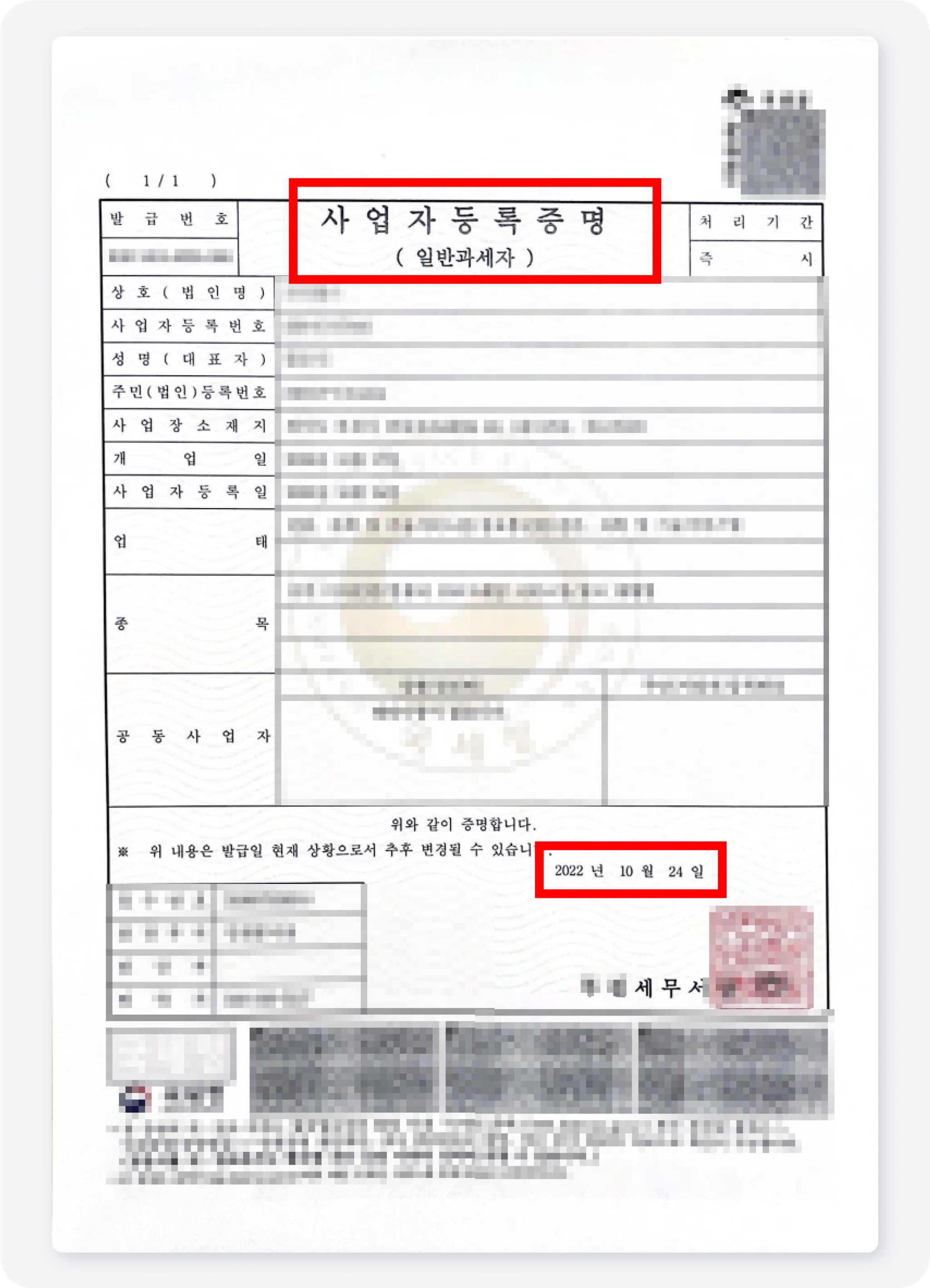 ※ 반드시 사업자등록증의 정보와 일치해야 해요.