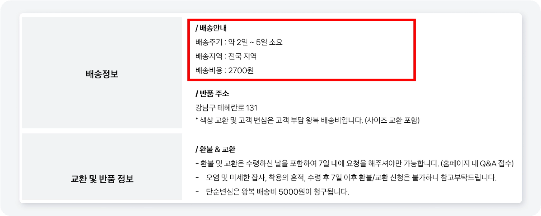 ② 무형상품 : 서비스 제공 기간을 꼭 기재해주세요.