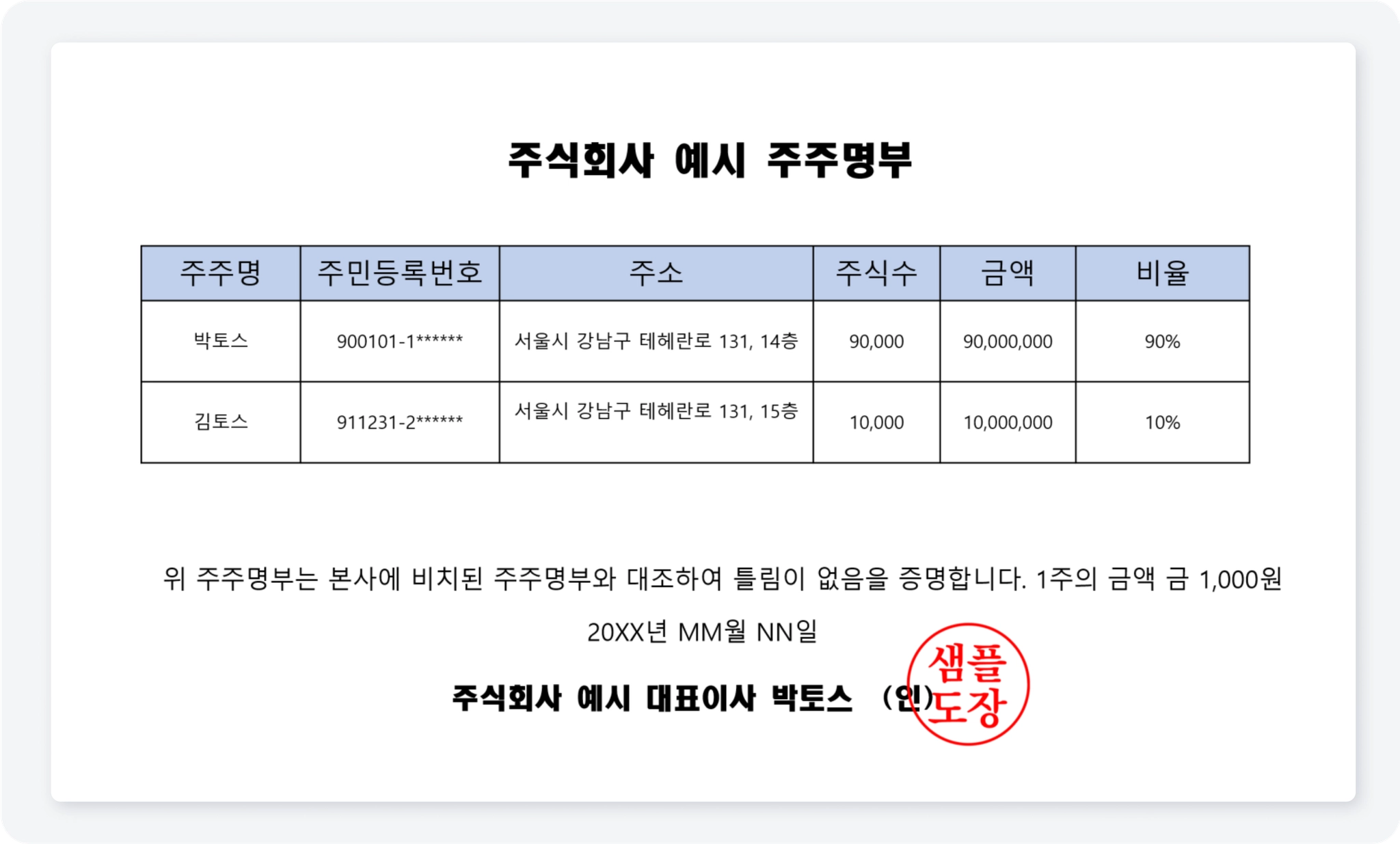 사업자등록증 주소 : 서울특별시 강남구 테헤란로131