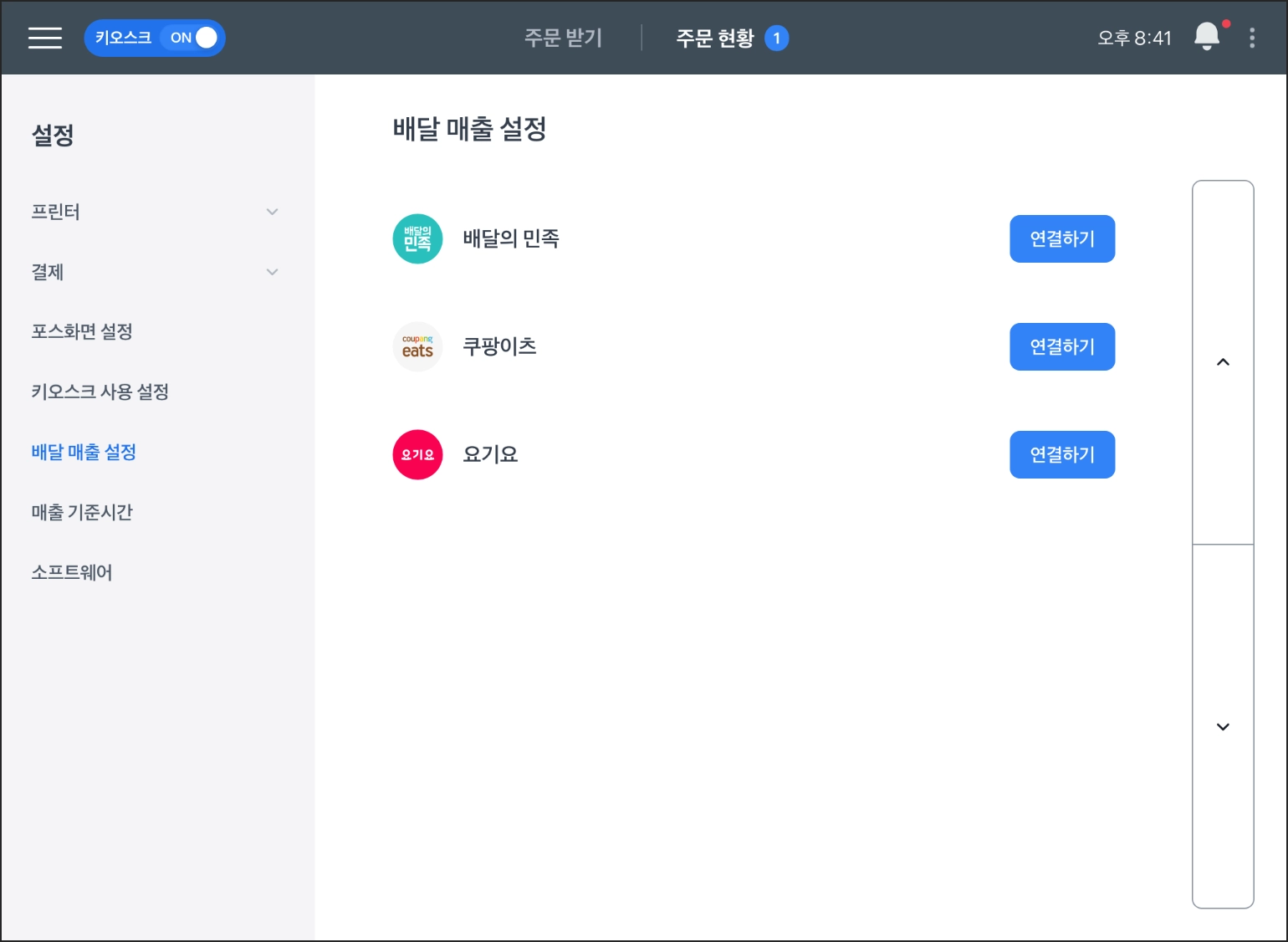 매장에서 사용하는 배달서비스를 선택한 후 연결을 진행해주세요.