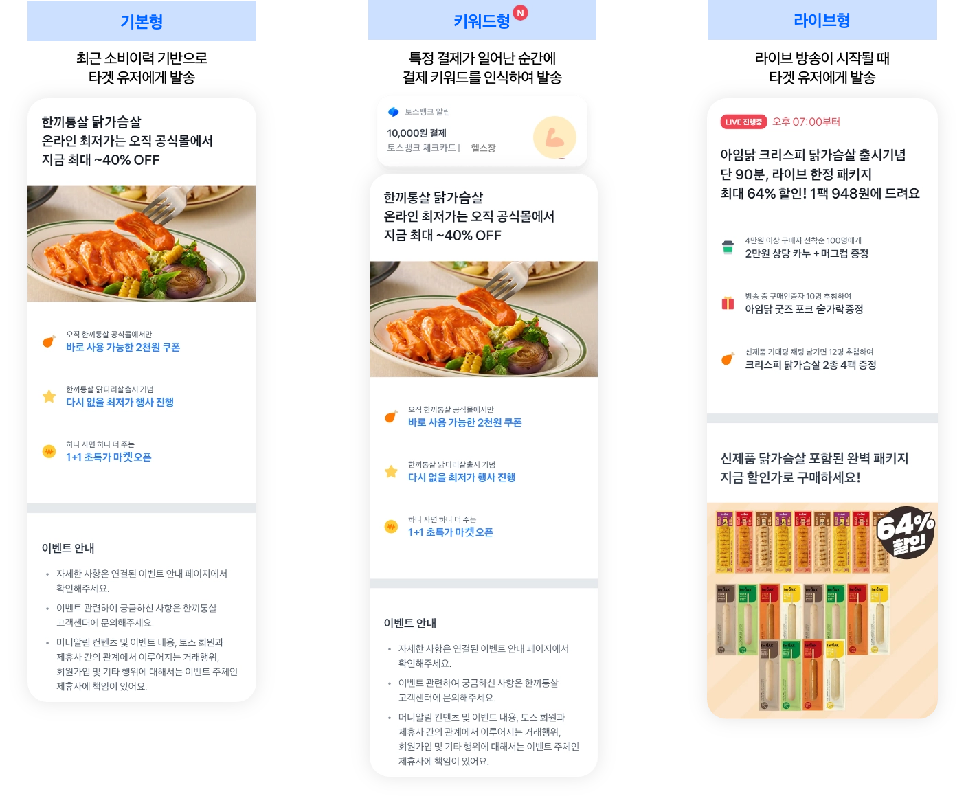 2024년 4월 29일부터 생성되는 머니알림 광고는 기본형, 라이브형, 키워드형 3가지 중 선택이 가능해질 예정입니다.