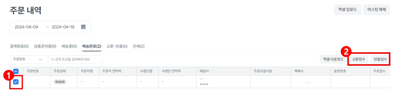 배송완료 - 교환/반품 접수 방법