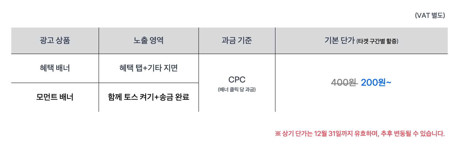 2023년 9월 4일(월) 적용될 toss ads 혜택탭 배너 프로모션을 공지드립니다.