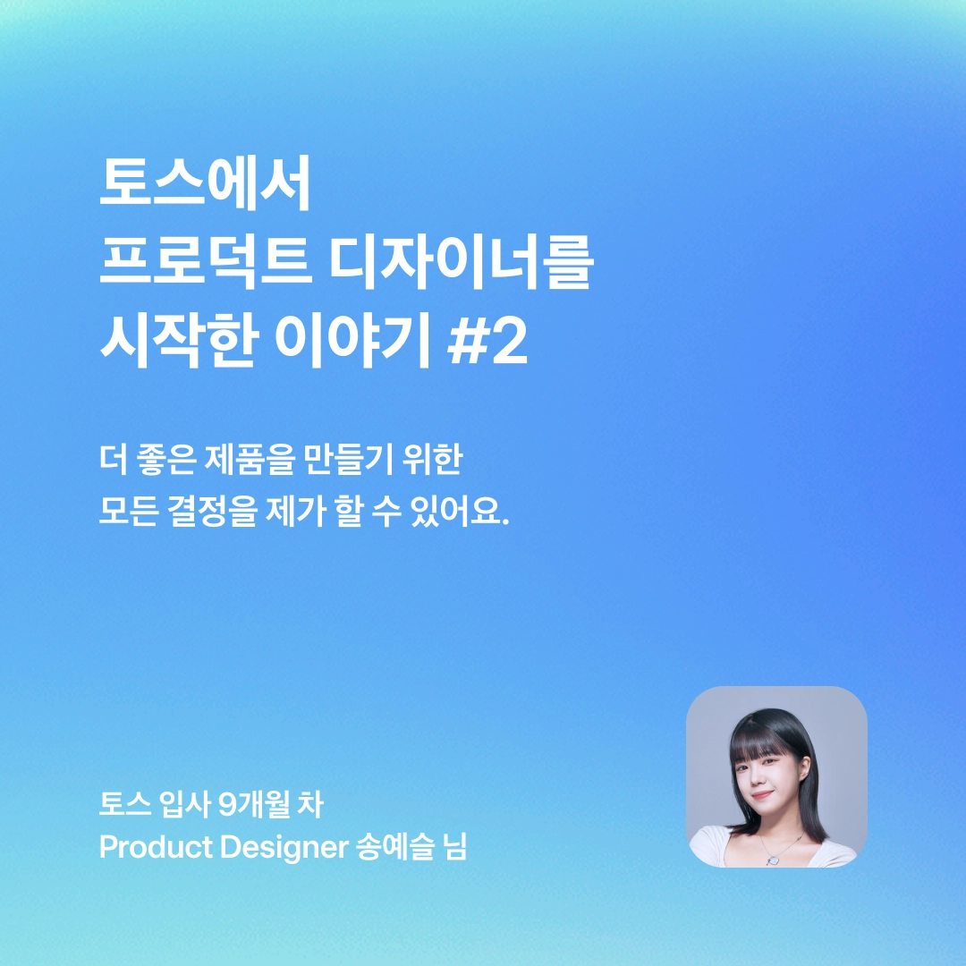 안녕하세요, 송예슬입니다. 토스뱅크에서 프로덕트 디자이너로 일하고 있어요.