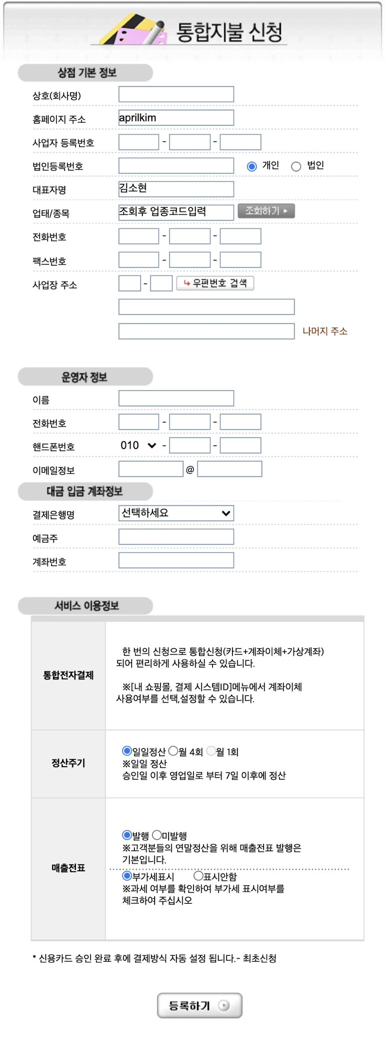 보내실 곳 주소: 서울시 강남구 테헤란로 131, 한국지식재산센터 14층 전자결제서비스 가맹점 계약팀 앞 (우: 06133)