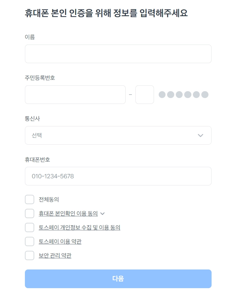 예를 들어, 업무 담당자라면 대표자의 정보가 아닌 담당자의 정보로 인증을 진행해 주세요.