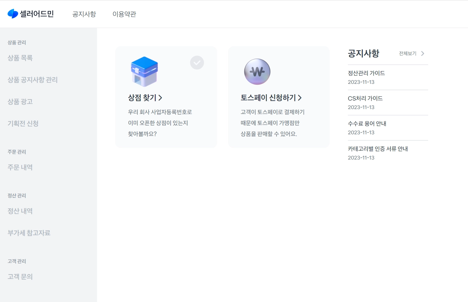 등록한 상품 판매를 원하신다면, 기존 상점 찾기 또는 토스페이 신청을 진행해 주세요